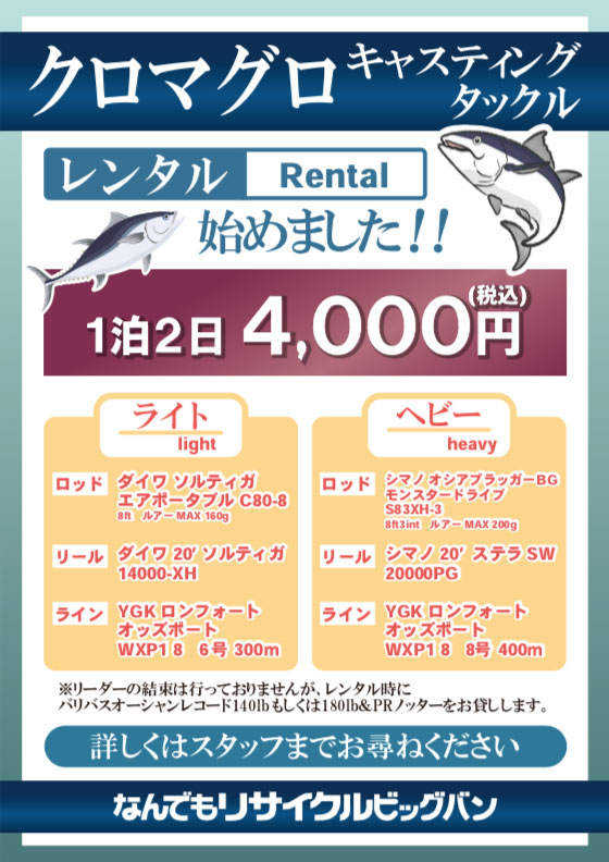 なんと!!札幌のリサイクルショップで、マグロキャスティングタックルのレンタルをしている所を発見しました😍✨