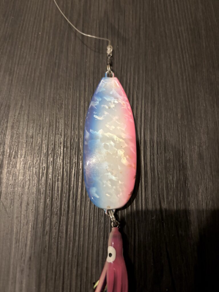 気合を入れて選んだルアーは、前日から決めていた鮭将軍のブルピン😊✨