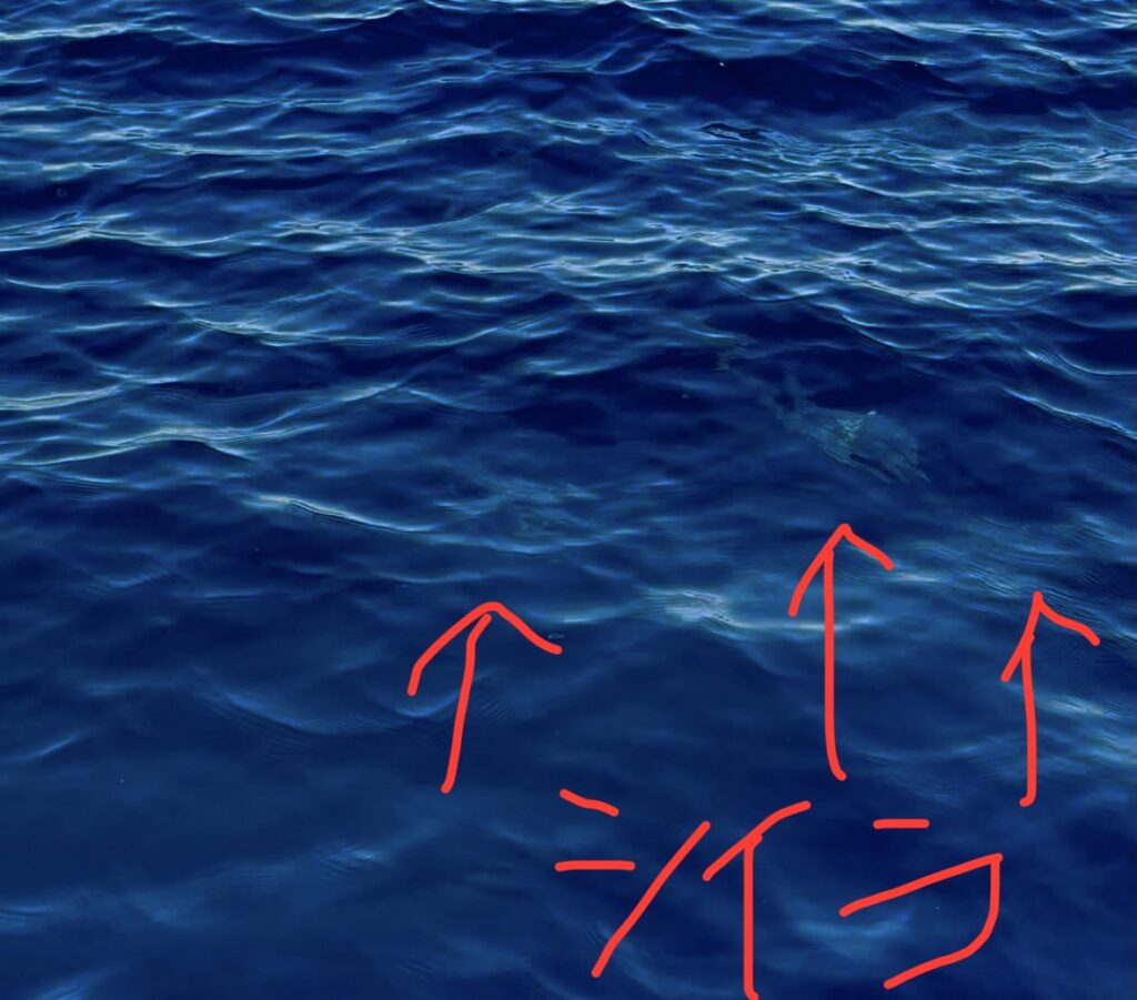 何者だろう?と眺めながら誘い出しをしている時にふっと海面をみると、、、